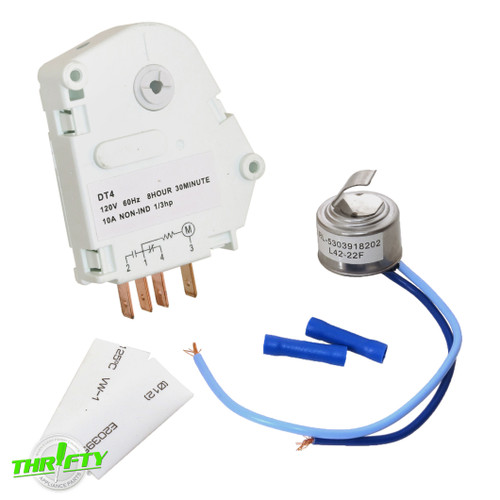 - Includes (1) 4-Terminal Defrost Timer, (1) Defrost Thermostat with Stripped Leads, (2) Butt Connectors, (2) Heat-Shrink Wraps.