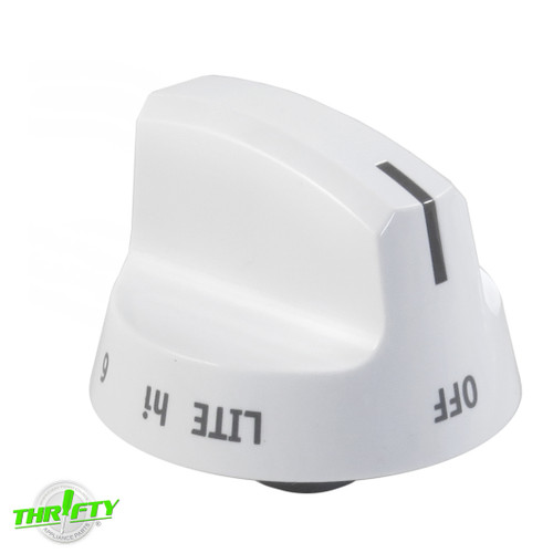 Replacement burner knob used for some Frigidaire and White-Westinghouse range models.