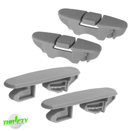 Replacement rail stop end cap set used for some Amana, Ikea, Kenmore, KitchenAid, and Whirlpool dishwasher models.