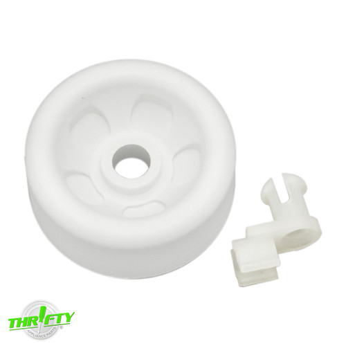 Replacement dish rack roller and axle used for some Admiral, Amana, Crosley, GE, Hotpoint, Jenn-Air, Kenmore, Magic Chef, Maytag, and Norge dishwasher models.