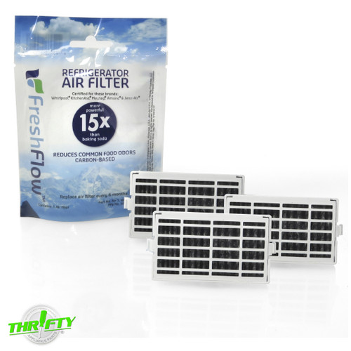 Air filter used on various Amana, Ikea, Jenn-Air, Kenmore, KitchenAid, Maytag, and Whirlpool refrigerators.